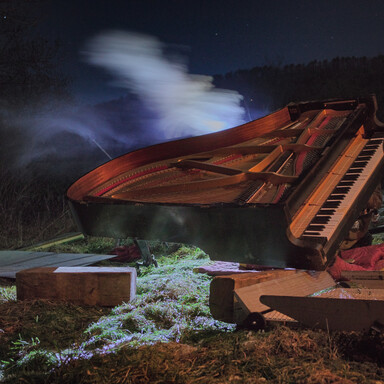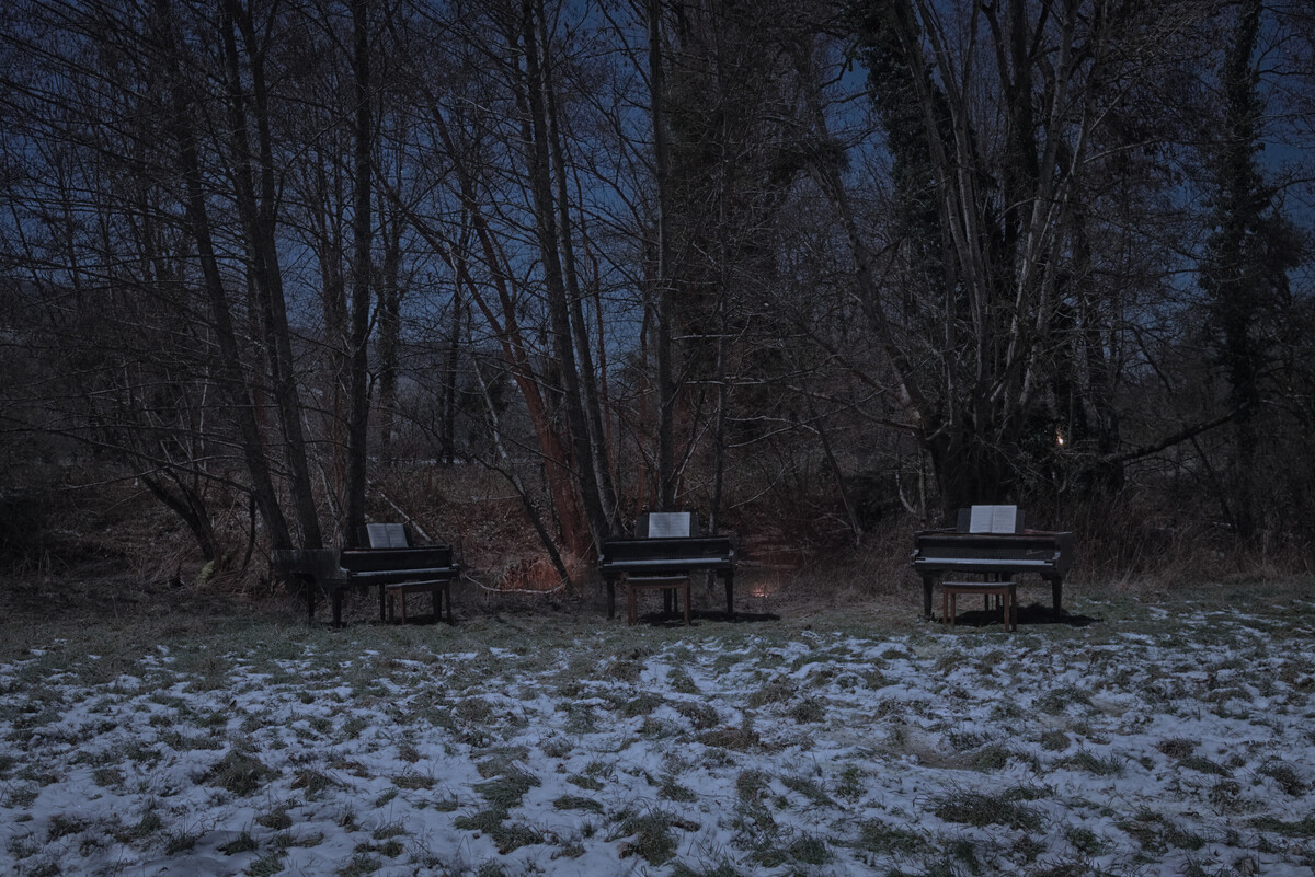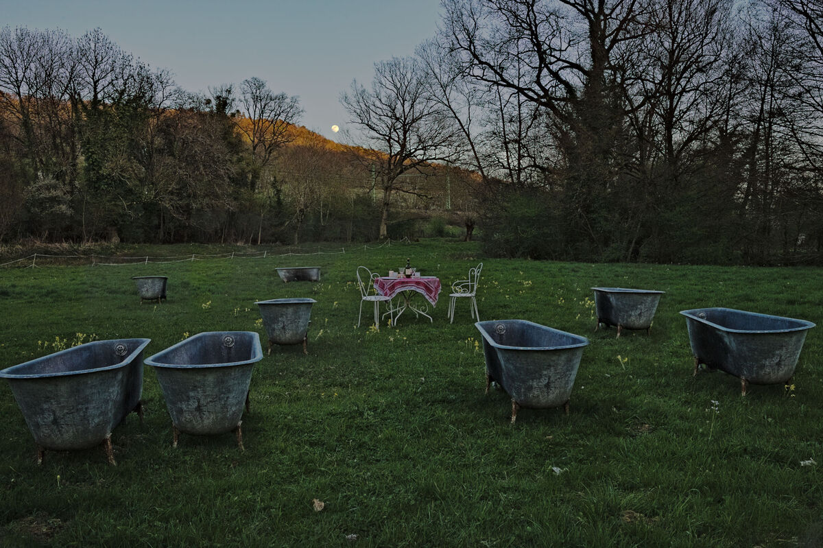 Certains soirs de pleine lune, avec mon amoureuse, on se charge d'un piano à queue ou d'une baignoire à pied, on les fait paitre sous le clair de lune et j'en garde la trace dans l'espace et le temps concrétisés de l'image finale.